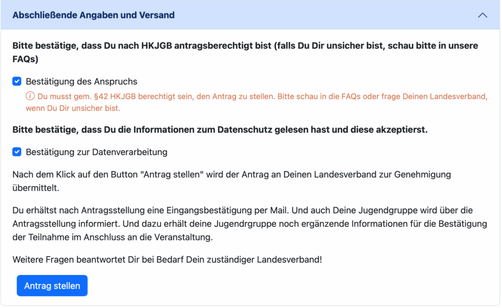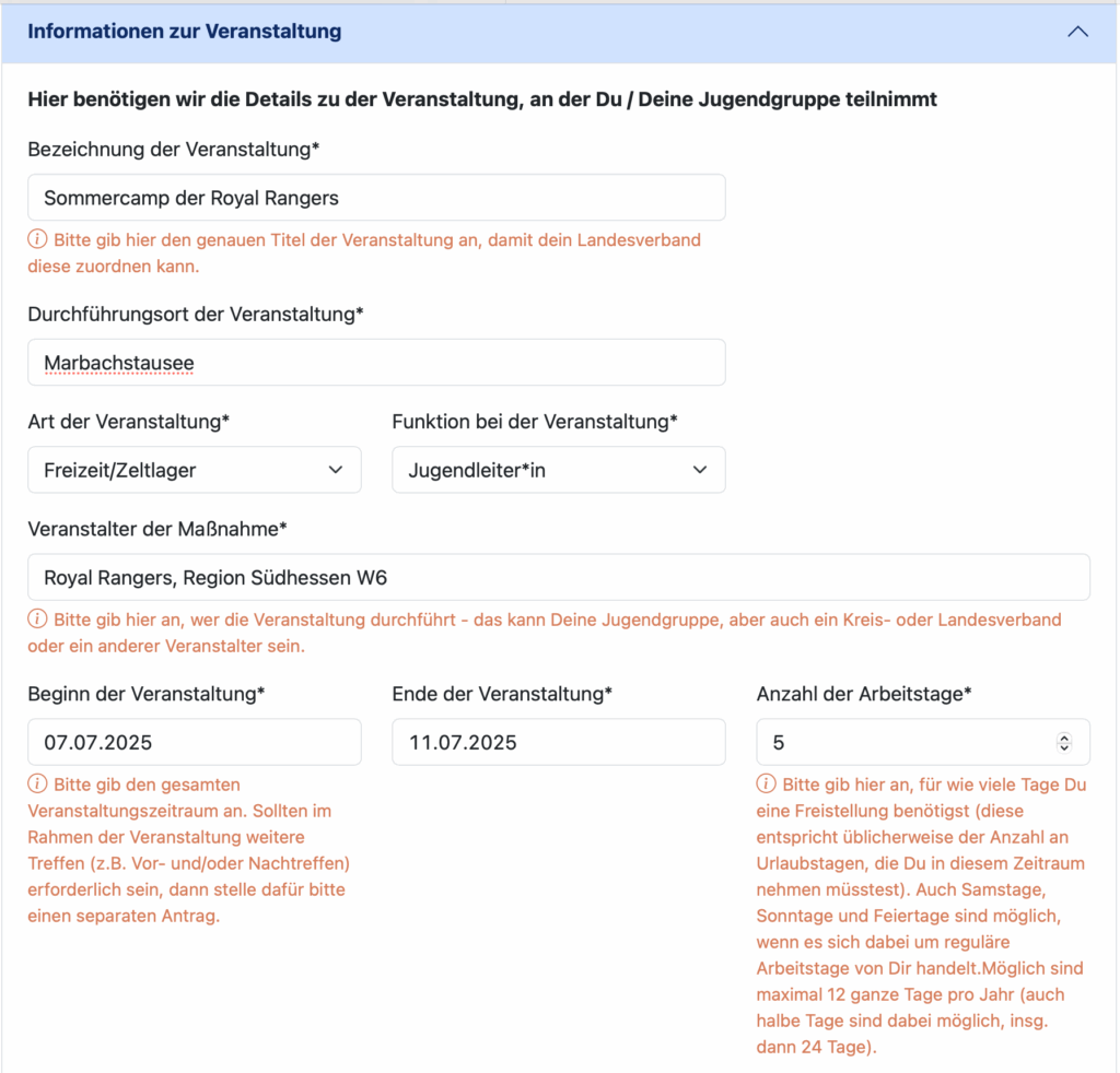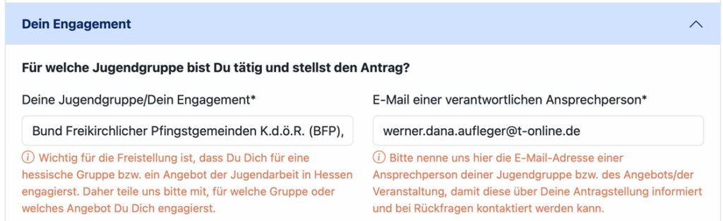 Im Formular dort sind die Felder wie folgt auszufüllen: